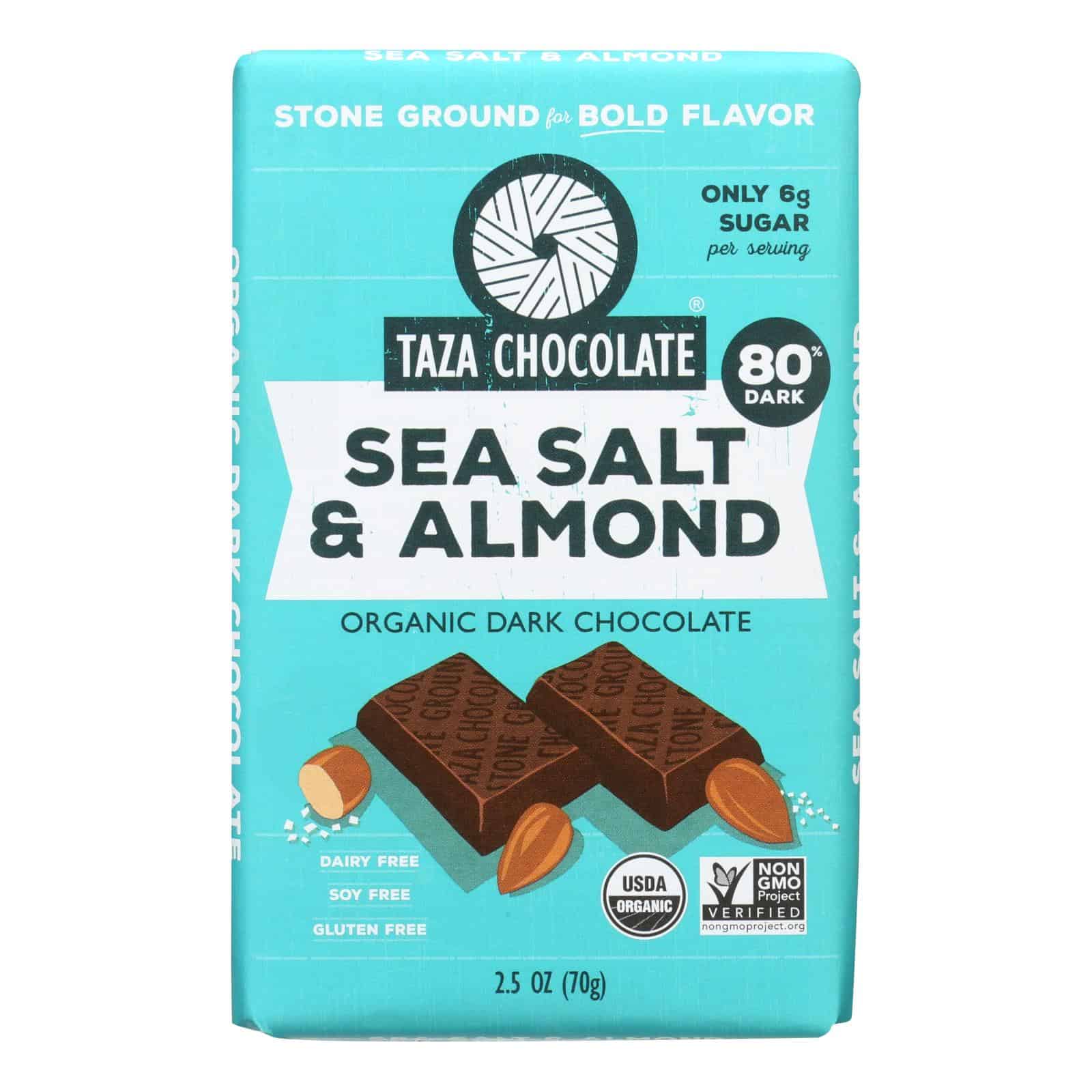 Taza Chocolate Stone Ground Organic Dark Chocolate Bar – Sea Salt and Almond – Case of 10 – 2.5 oz.