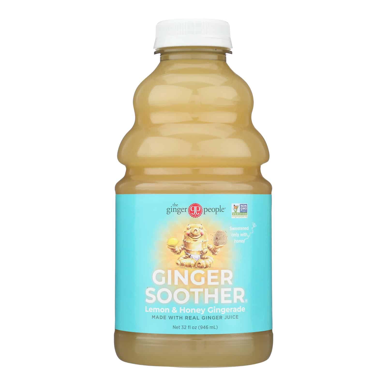 THE GINGER PEOPLE GINGER SOOTHER IS A SATISFYING, GREAT TASTING ALL-NATURAL DRINK THAT WILL HELP KEEP YOU IN HARMONY ALL DAY. GINGER IS SAID TO SOOTHE THE THROAT AND STOMACH, WARM THE INTERNAL ORGANS, AND EASE NAUSEA AND AILMENTS FROM COLDS TO HEADACHES. THIS DRINK COMES IN A 32 FL. OZ. BOTTLE, CONTAINS LEMON AND HONEY AND CAN BE ENJOYED HOT OR COLD.