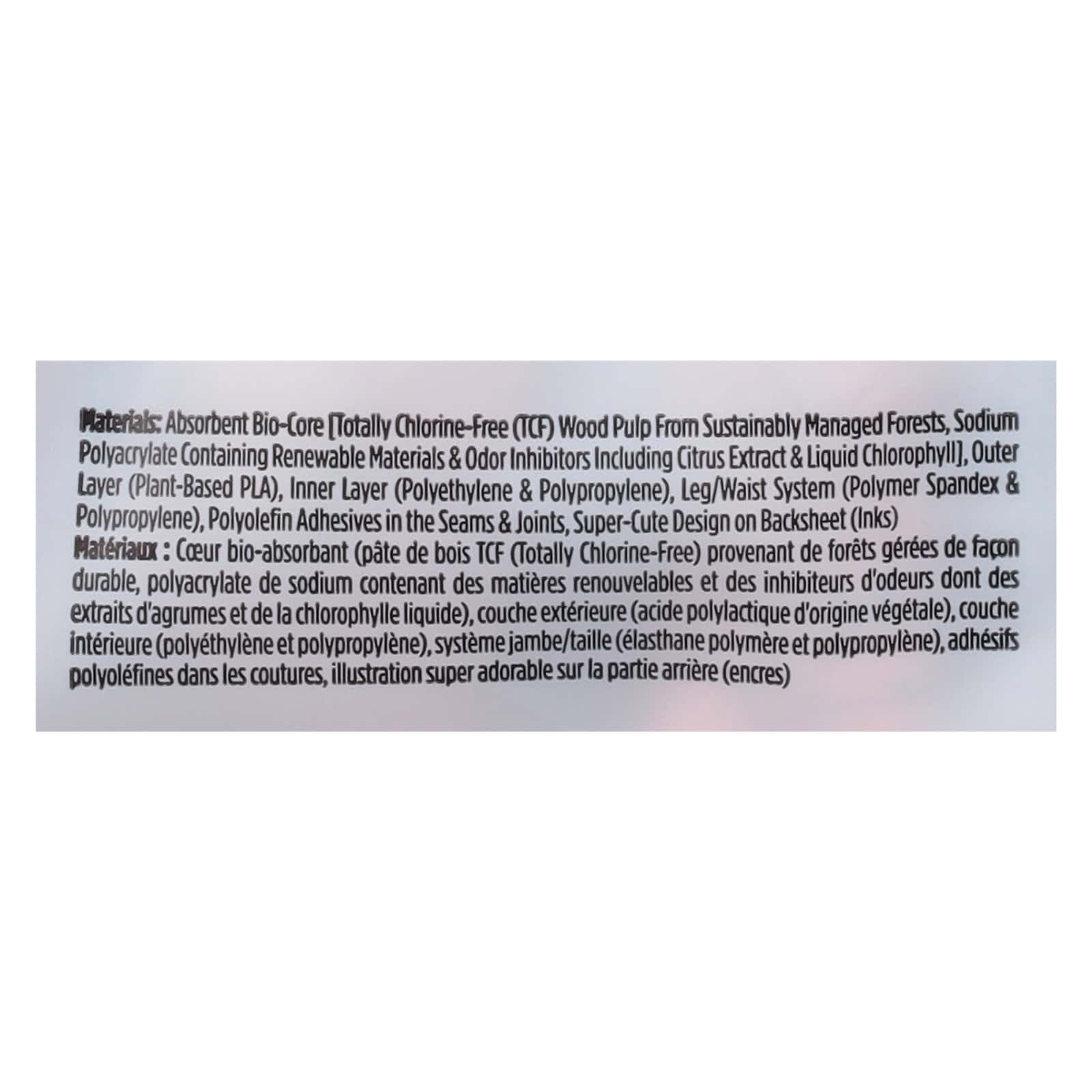 Gentle + absorbent super-soft liner. Hypoallergenic. Eco-friendly (see diagram for details). Secure fit. Made without latex; fragrances or lotions; chlorine processing. True absorb technology. Advanced leak protection. Holds over 17x its weight in fluid. New & improved. Softer. More absorbent. Our Honest Purpose: We’re on a mission to empower people to live happy, healthy lives. honest.com/purpose. Not tested on animals. Super-Soft Liner: Cloudlike liner provides ultimate comfort for baby’s delicate skin while rapidly funneling away moisture – helping to keep baby happy, dry and comfortable. Honestly Secure Fit: Soft, stretchy side panels, comfy elastic waistband, sure-fit leg cuffs and fastening tabs – blowouts be gone! True Absorb Core: Super-absorbent, multi-layer technology locks away moisture, holding over 17x its weight in fluid for advanced leak protection. Eco-Friendly Materials: Bio-based core with sustainability harvested fluff pulp and plant-derived materials. 100% satisfaction guaranteed. Join us at honest.com or call 888.862.8818. Please recycle. Designed in California. Responsible made in Mexico.