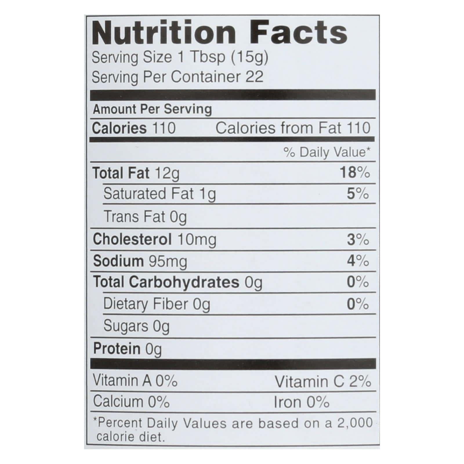 THE OJAI COOK LEMONAISE IS CERTIFIED GLUTEN-FREE AND NON-GMO PROJECT VERIFIED MAYONNAISE MADE WITH CAGE-FREE EGGS. EACH 12 FL. OZ. JAR CONTAINS 22 SERVINGS OF LOW CARBOHYDRATE, KOSHER LEMONAISE. OUR LEMONAISE HAS 110 CALORIES PER SERVING, SO IT CAN FIT INTO MOST DIETS. SEE NUTRITION FACTS PANEL FOR ALLERGENS.
