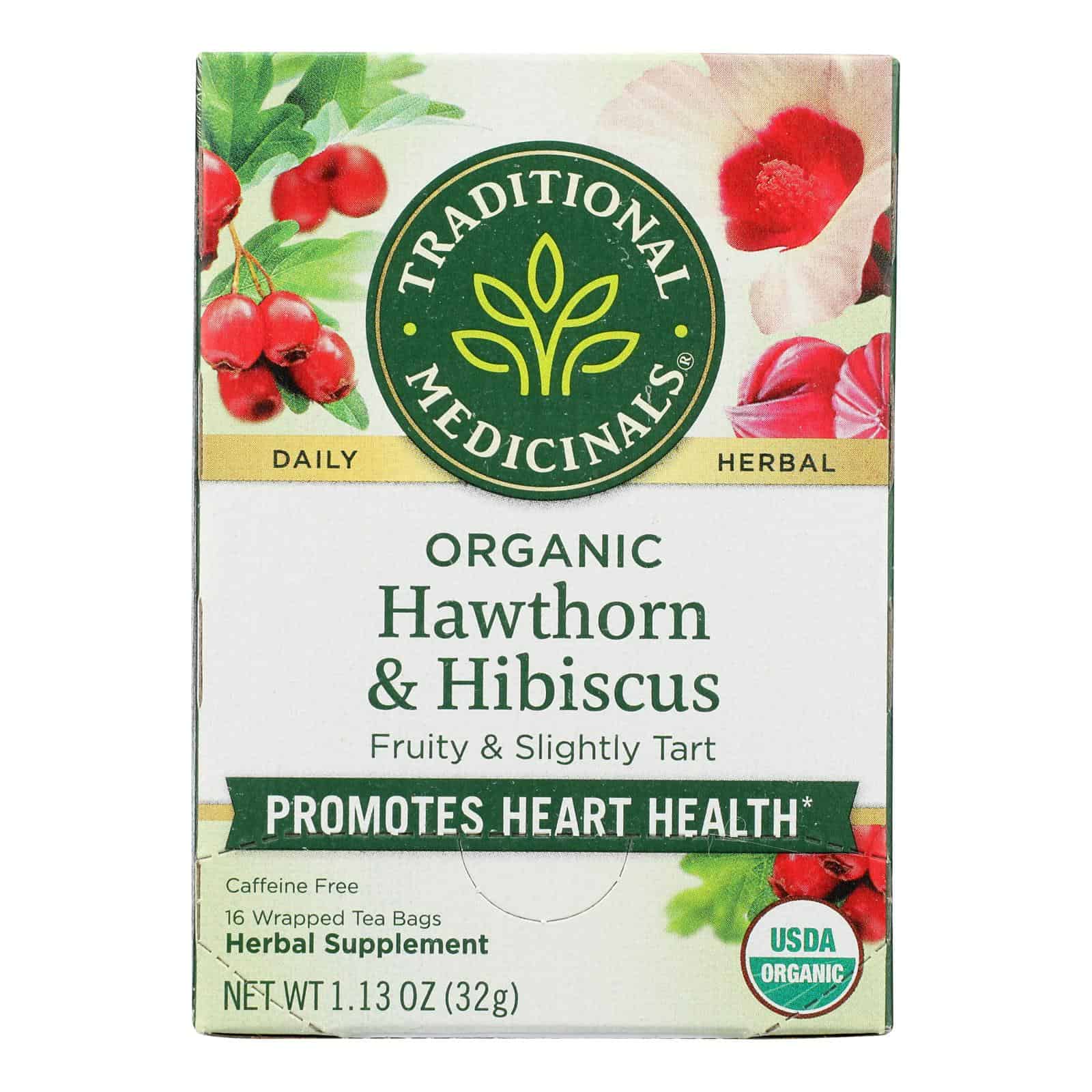 TRADITIONAL MEDICINALS’ HAWTHORN WITH HIBISCUS HERBAL TEA IS MADE WITH CERTIFIED USDA ORGANIC AND VERIFIED NON-GMO INGREDIENTS. EACH BOX CONTAINS 16 TEA BAGS OF OUR NATURALLY CAFFEINE FREE HERBAL TEA. OUR PRIMARY INGREDIENT, ORGANIC HAWTHORN LEAF AND FLOWER, PROMOTES HEART HEALTH. SEE LABEL FOR WARNINGS AND RISKS.