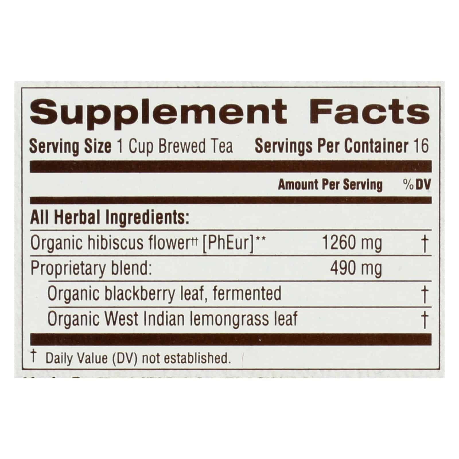 TRADITIONAL MEDICINALS’ HIBISCUS BAGGED TEA IS MADE WITH CERTIFIED USDA ORGANIC AND VERIFIED NON-GMO INGREDIENTS. EACH BOX CONTAINS 16 TEA BAGS OF OUR NATURALLY CAFFEINE FREE HERBAL TEA. THE PRIMARY INGREDIENT, HIBISCUS FLOWER, GIVES OUR TEA IT’S ABILITY TO PROMOTE A HEALTHY CARDIOVASCULAR SYSTEM. SEE LABEL FOR WARNINGS AND RISKS.