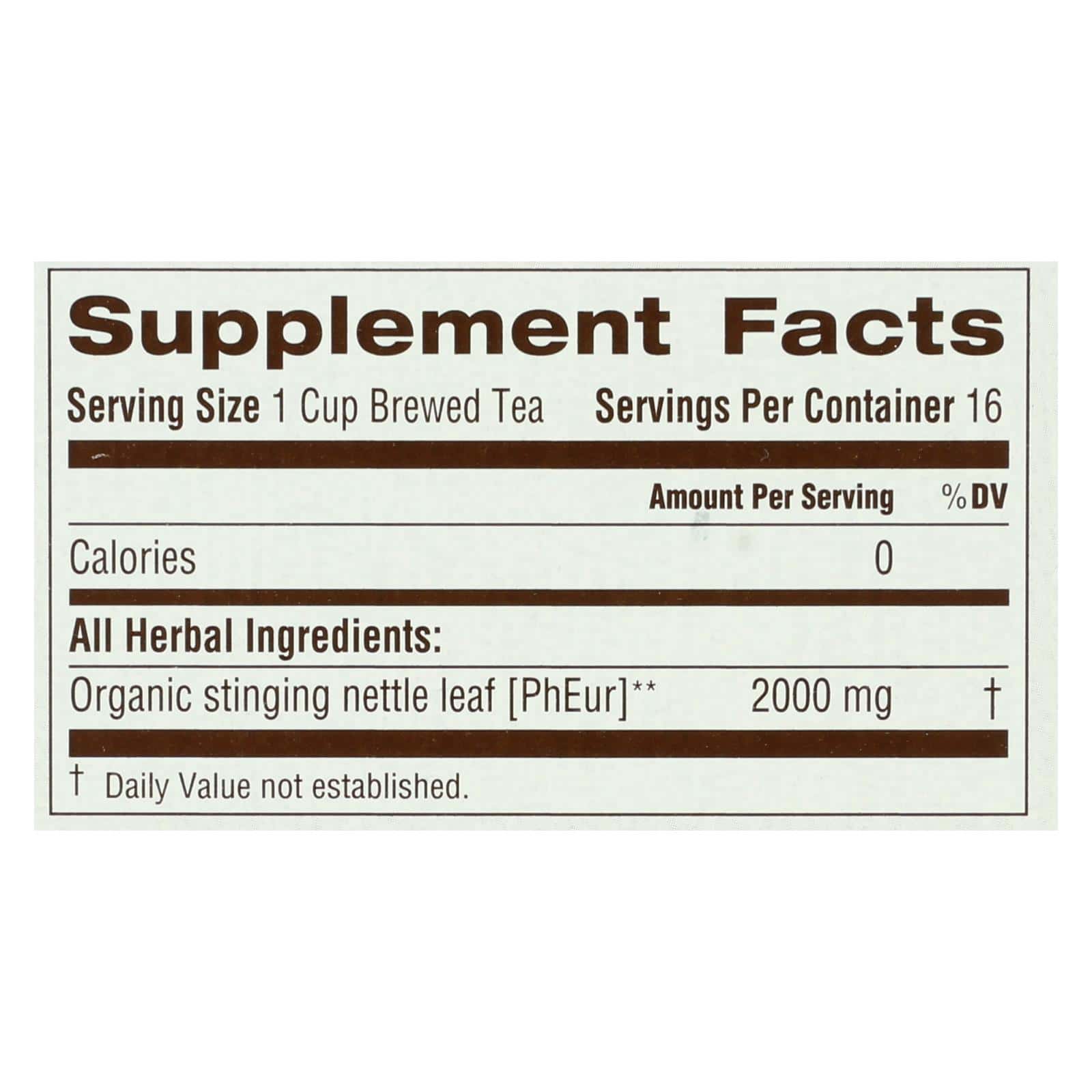 TRADITIONAL MEDICINALS’ NETTLE LEAF BAGGED TEA IS MADE WITH CERTIFIED USDA ORGANIC AND VERIFIED NON-GMO INGREDIENTS. EACH BOX CONTAINS 16 TEA BAGS OF OUR NATURALLY CAFFEINE FREE HERBAL TEA. OUR PRIMARY INGREDIENT, STINGING NETTLE LEAF, SUPPORTS WHOLE BODY AND JOINT HEALTH. SEE LABEL FOR WARNINGS AND RISKS.