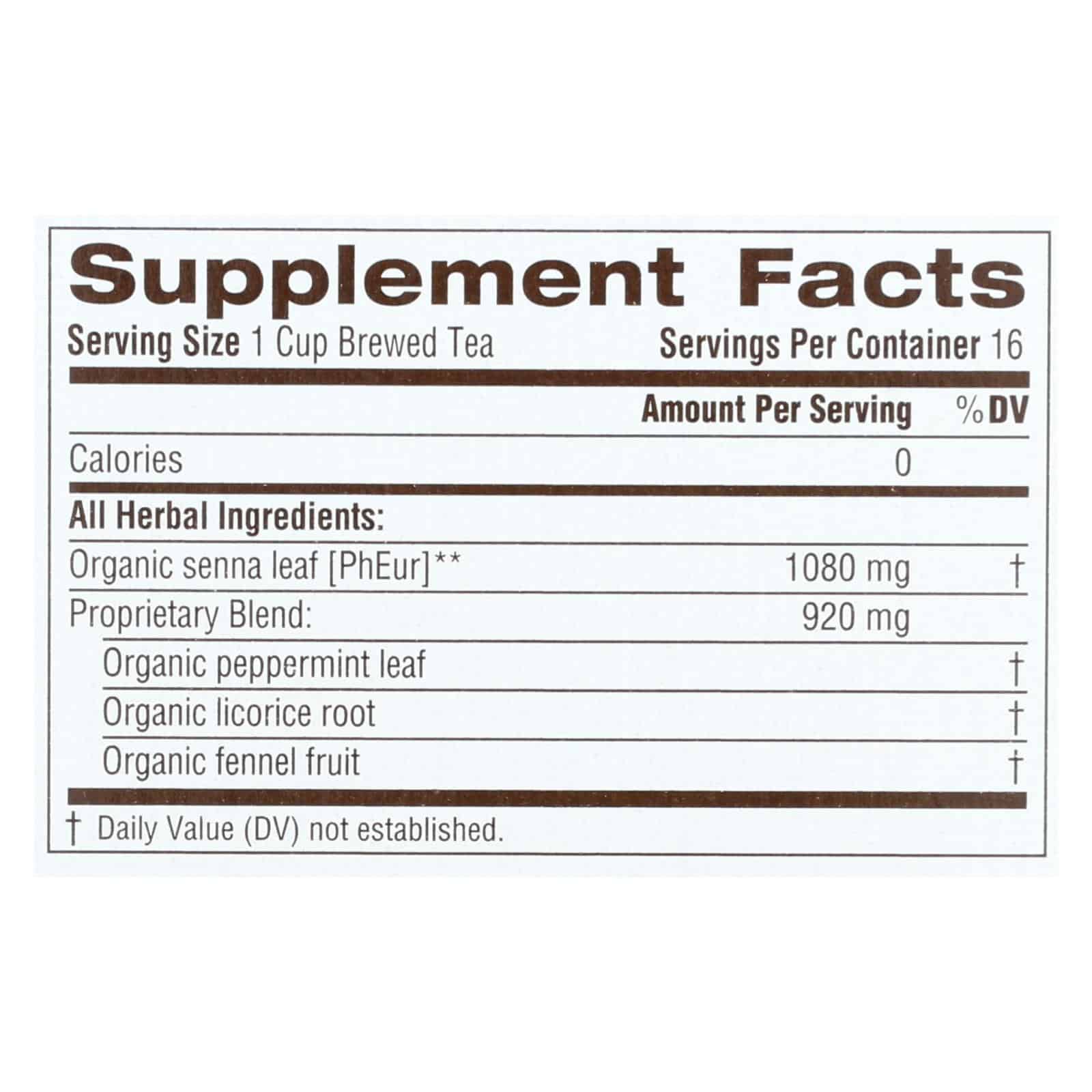 TRADITIONAL MEDICINALS’ SMOOTH MOVE PEPPERMINT BAGGED TEA IS MADE WITH CERTIFIED USDA ORGANIC AND VERIFIED NON-GMO INGREDIENTS. EACH BOX CONTAINS 16 TEA BAGS OF OUR NATURALLY CAFFEINE FREE HERBAL TEA. OUR PRIMARY INGREDIENT, SENNA LEAF, HELPS WITH THE BODY’S RESPONSE TO OCCASIONAL CONSTIPATION. SEE LABEL FOR WARNINGS AND RISKS.