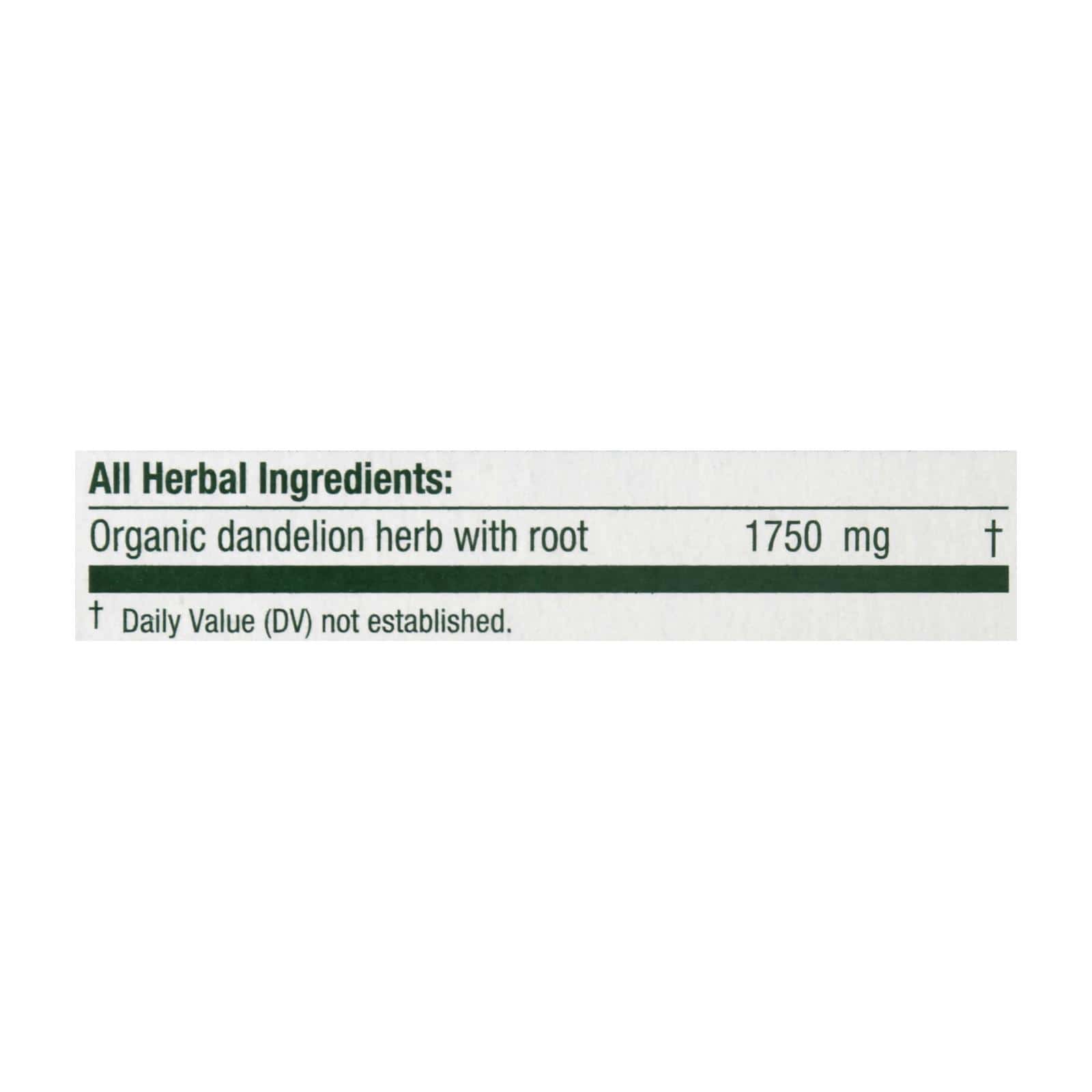 TRADITIONAL MEDICINALS’ DANDELION LEAF & ROOT BAGGED TEA IS MADE WITH CERTIFIED USDA ORGANIC AND VERIFIED NON-GMO INGREDIENTS. EACH BOX CONTAINS 16 TEA BAGS OF OUR NATURALLY CAFFEINE FREE HERBAL TEA. THE PRIMARY INGREDIENT, ORGANIC DANDELION HERB WITH ROOT, SUPPORTS KIDNEY FUNCTION AND HEALTHY DIGESTION. SEE LABEL FOR WARNINGS AND RISKS.