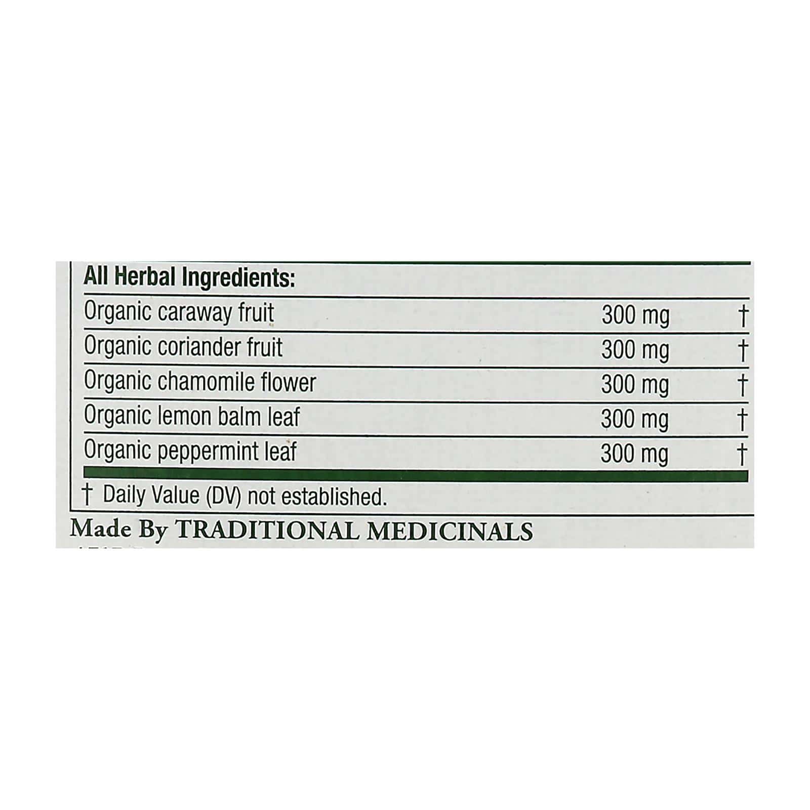 TRADITIONAL MEDICINALS’ GAS RELIEF BAGGED TEA IS MADE WITH CERTIFIED USDA ORGANIC AND VERIFIED NON-GMO INGREDIENTS. EACH BOX CONTAINS 16 TEA BAGS OF OUR NATURALLY CAFFEINE FREE HERBAL TEA. INGREDIENTS LIKE CARAWAY FRUIT, CORIANDER FRUIT, CHAMOMILE FLOWER, LEMON BALM LEAF AND PEPPERMINT LEAF GIVE SOOTHE DIGESTION AND RELIEVE GAS AND BLOATING. SEE LABEL FOR WARNINGS AND RISKS.