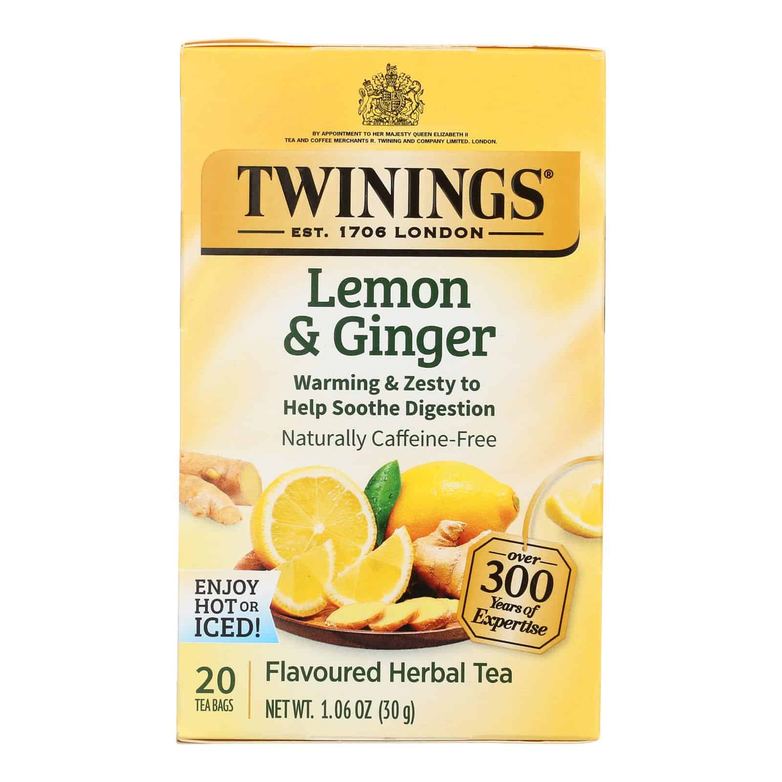 A comforting herbal tea made with spicy ginger and the tangy flavour of lemon. Individual tea bags sealed for freshness. Naturally caffeine free. By appointment to her Majesty Queen Elizabeth tea and coffee merchants, R. Twining and Company Limited. London. Twinings of London. Estd. 1706. 216 the Strand, London WC2, England. 100% natural ingredients. A comforting herbal tea expertly blended with ginger and the tangy flavour of lemon to deliver a soothing tea with a warm, inviting aroma and spiced lemon taste. Herbal Teas Fresh, Flavourful & Aromatic: For over 300 years, Twinings has been sourcing and blending the finest, high-quality teas from around the globe to ensure that your tea has the perfect balance of tea taste, flavour and aroma. Twinings blends to perfection the finest herbs, fruits and spices to give you a line of great-tasting herbal teas with mouth-watering flavours, fresh tastes and irresistible aromas. Whatever your mood – there’s a blend for every occasion. The Twinings Story: In 1706 Thomas Twining began selling fine tea from an English storefront in The Strand, London. Today, Twinings still sells some of the world’s best teas from the original store and in more than 100 countries throughout the world. www.twiningsusa.com. To discover more about these fine teas, please visit us at www.twiningsusa.com. For questions or comments, please contact us at: www.twiningusa.com or call us at 1-800-803-6695. If you enjoy Twinings lemon & ginger, we recommend that you try other Twinings herbal teas including Pure peppermint and orange & cinnamon spice. Enjoy all of Twinings Premium Teas – Classic: Traditional style black teas. Premium Blacks: Fine black teas with just the right amount of flavour. Chais: black teas blended with savoury spice flavours. Origins: From the world’s best tea regions. Greens: Naturally refreshing teas with a smooth taste. Herbals: Caffeine free herbal & fruit flavour blends. Cold Brewed: refreshing iced teas that brew in cold water in just 5 minutes. Product of Poland with expertly selected herbals grown in China, Bulgaria, Egypt and other countries.