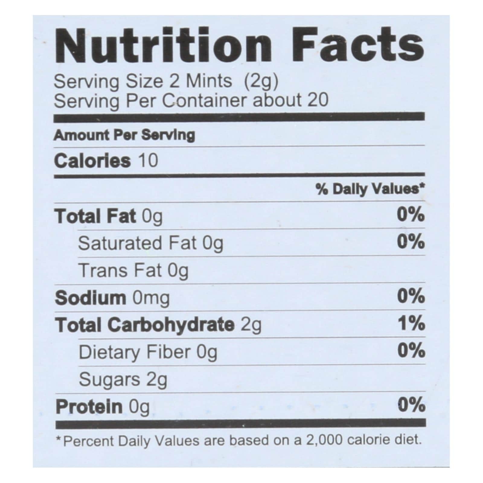 VERMINTS WINTERGREEN BREATH MINTS ARE A 100% USDA-CERTIFIED ORGANIC PRODUCT. THIS 1.41 OZ. TIN OF VEGAN MINTS IS ALSO CERTIFIED NON-GMO, AND THEY ARE A GLUTEN-FREE, DELICIOUS WAY TO FRESHEN YOUR BREATH. WITH ONLY 2 G. OF SUGAR PER SERVING, THEY ARE ALSO KOSHER AND NUT-FREE. SEE NUTRITION FACTS PANEL FOR ALLERGENS.