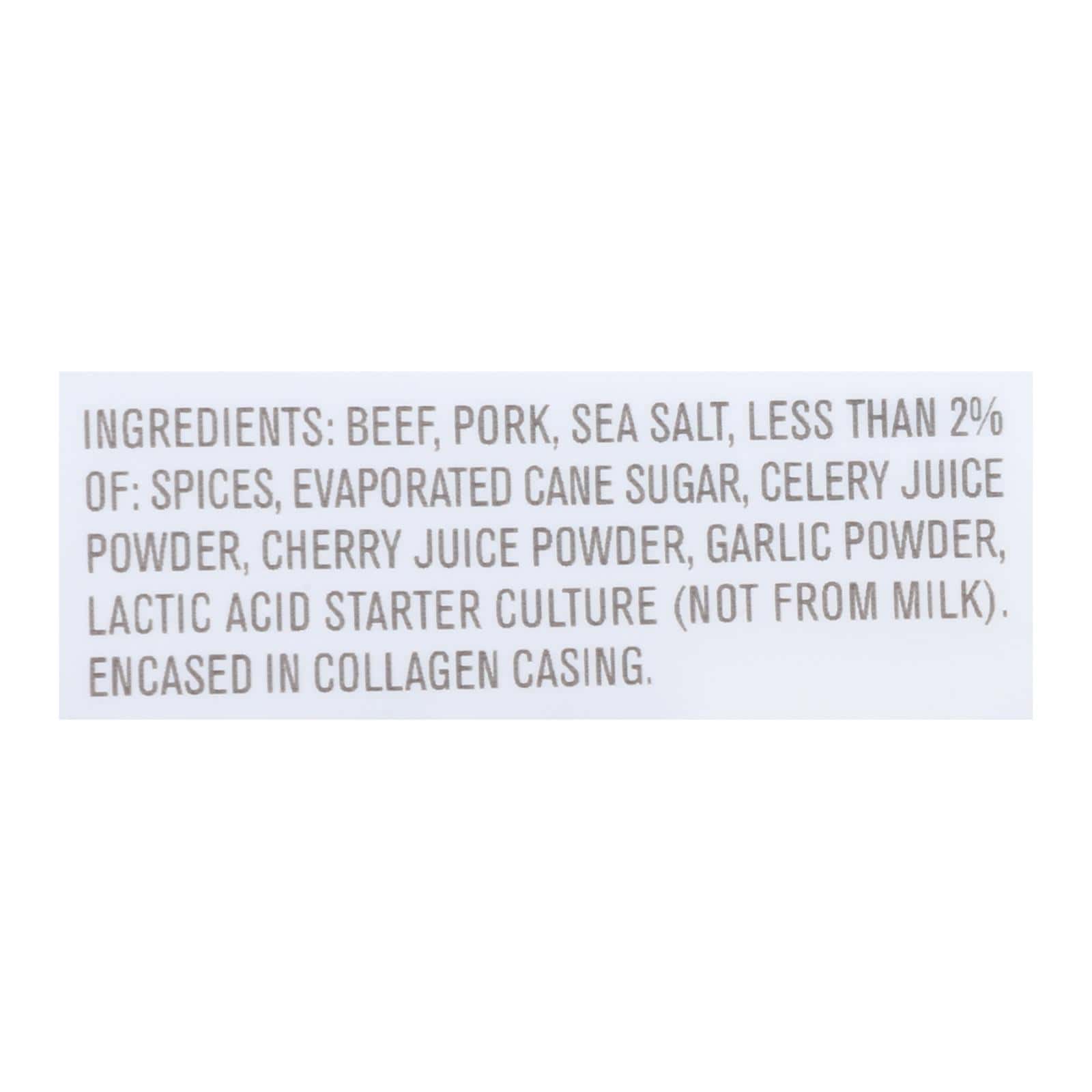 VERMONT SMOKE & CURE MINIS CRACKED PEPPER BEEF & PORK STICKS USE RESPONSIBLY SOURCED MEATS AND SIMPLE INGREDIENTS, SPICES AND HERBS TO CREATE THE FINEST FLAVOR IN EVERY BITE. CRAFTED FROM LEAN, WHOLE CUTS OF BEEF AND PORK, THESE TASTY GLUTEN-FREE BITES ARE COMBINED WITH CRACKED PEPPER AND A CLASSIC MIX OF REAL SPICES FOR NOURISHING MEAT PROTEIN AND JUST A BIT OF PEPPERY KICK. THE BEEF AND PORK IS RAISED WITHOUT ANTIBIOTICS OR ADDED HORMONES AND NO NITRITES OR NITRATES ARE ADDED EXCEPT THOSE NATURALLY OCCURRING IN SEA SALT AND CELERY JUICE POWDER. INCLUDES SIX 0.5 OZ. VERMONT SMOKE & CURE MINIS CRACKED PEPPER BEEF & PORK STICKS. AT VERMONT SMOKE & CURE, WE’VE BEEN CONSCIOUSLY CRAFTING DELICIOUS SMOKED MEATS AND MEAT SNACKS SINCE 1962. OUR TEAM OF EMPLOYEE-OWNERS MAKES EVERYTHING IN OUR SMOKEHOUSE RIGHT HERE IN THE HILLS OF VERMONT. WE PRIDE OURSELVES ON BEING A GOOD NEIGHBOR AND PARTNER TO OUR LOCAL FARMERS.