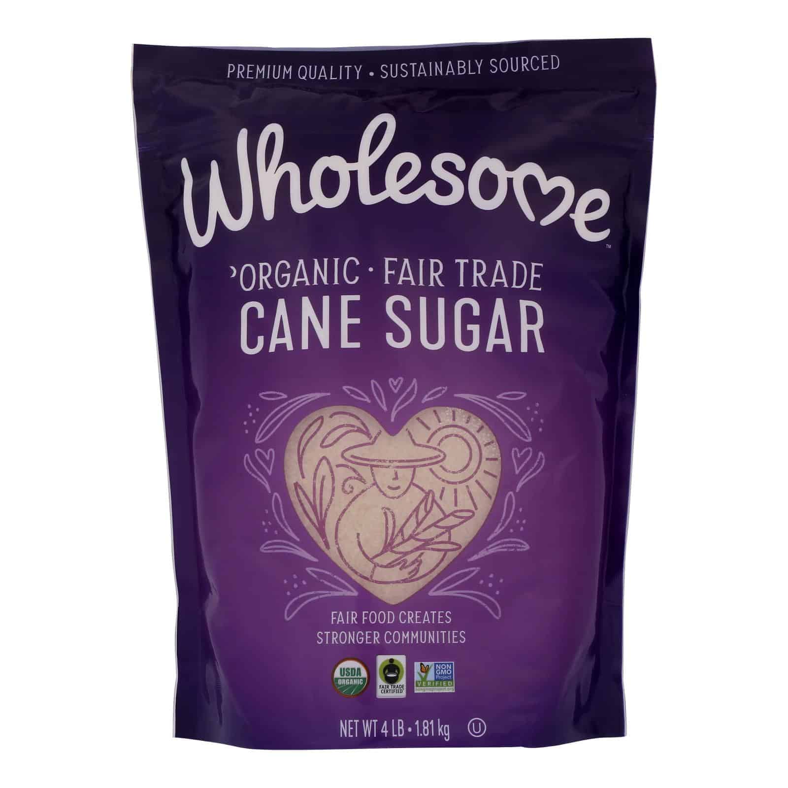 WHOLESOME! ORGANIC CANE SUGAR EVAPORATED CANE JUICE IS MADE FROM CERTIFIED NON-GMO INGREDIENTS. OUR SUGAR IS A CERTIFIED FAIR TRADE PRODUCT OF PARAGUAY. ORGANIC CANE SUGAR IS NATURALLY GLUTEN-FREE AND VEGAN. SUBSTITUTE 1 CUP OF ORGANIC CANE SUGAR FOR 1 CUP OF REFINED SUGAR. THIS BAG HOLDS 4 POUNDS OF ORGANIC CANE SUGAR.