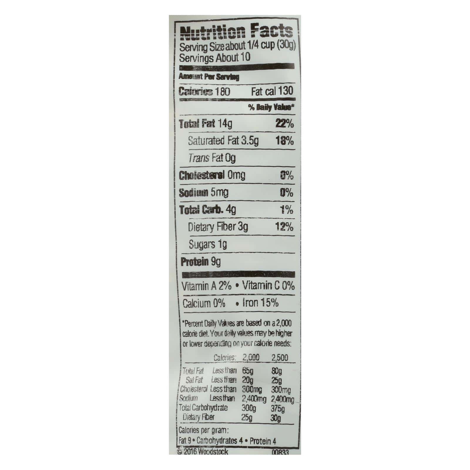 WOODSTOCK?S ORGANIC PUMPKIN SEEDS ARE CERTIFIED USDA ORGANIC AND NON-GMO. EACH 11 OZ. BAG CONTAINS ABOUT TEN ? CUP SERVINGS WITH 9 GRAMS OF PROTEIN PER SERVING. OUR PUMPKIN SEEDS ARE KOSHER AND VEGAN. PUMPKIN SEEDS PROVIDE A GOOD SOURCE OF BOTH IRON AND FIBER. THESE SEEDS CAN BE ADDED TO SALADS OR TRAIL MIXES, OR ENJOYED ON THEIR OWN.