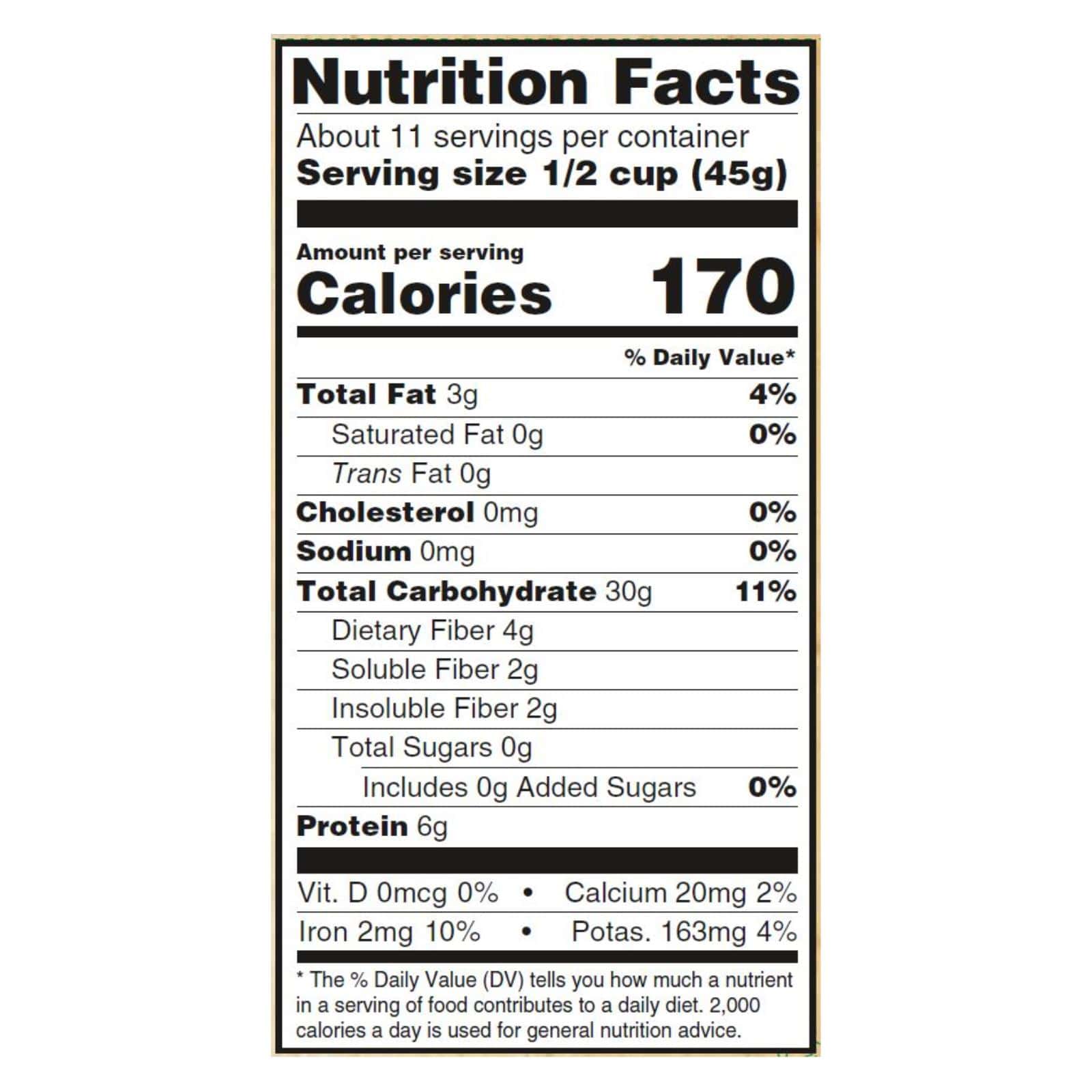 Organic. USDA Organic. Certified Organic by Oregon Tilth. 100%+ Whole Grain: 45 g or more per serving. 100% of the grain is whole grain. WholeGrainsCouncil.org. Heart healthy. Reduces the risk of heart disease. 3 grams of soluble fiber from oatmeal daily in a diet low in saturated fat and cholesterol may reduce the risk of heart disease. This cereal has 2 grams per serving. Non GMO Project verified. nongmoproject.org. Eat because it’s good! Cooks in 5 minutes or less. Here at Woodstock we celebrate foods that make you feel great about what you buy, eat, and serve your family. Our ingredients are simple, satisfying, and farmed from sources you can trust. Our team has been at it for over 30 years bringing passion for organic, non-GMO, and totally delicious food to the table. Woodstock-foods.com. Woodstock. Eat because it’s good. Let’s get social! Instagram. Facebook. Twitter. Find us (at)woodstockfoods. Produced in the USA. Oats from Canada and USA.