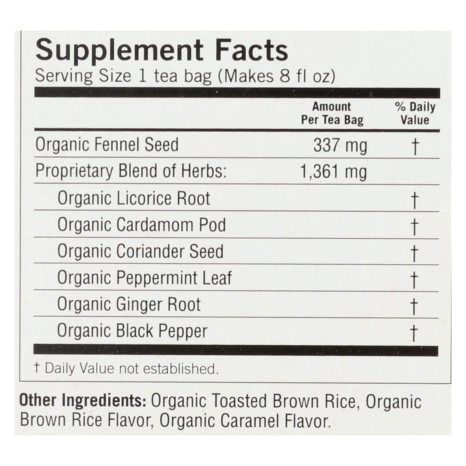 YOGI STOMACH EASE SPICY – MINT IS PACKAGED IN 16 TEA BAGS, EACH OF WHICH WILL MAKE AN 8 FL. OZ. CUP OF HERBAL TEA. STEEP YOUR TEA BAG IN HOT WATER FOR 7 MINUTES. THIS BEVERAGE WAS FORMULATED TO ASSIST IN ALLEVIATING STOMACH ACHES. IT’S ALL-ORGANIC INGREDIENTS INCLUDE FENNEL SEED, LICORICE ROOT, PEPPERMINT LEAF AND CARDAMOM POD. THIS IS A CAFFEINE-FREE, NON-GMO, KOSHER AND ORGANIC TEA. THE OXYGEN-BLEACHED TEA BAGS ARE COMPOSTABLE.
